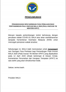 PENANGGUHAN SESI SARINGAN FASA PENILAIAN PERTANDINGAN PIALA INOVASI MALA 2020 ( PIALA INOVASI YB MENTERI KPKT)